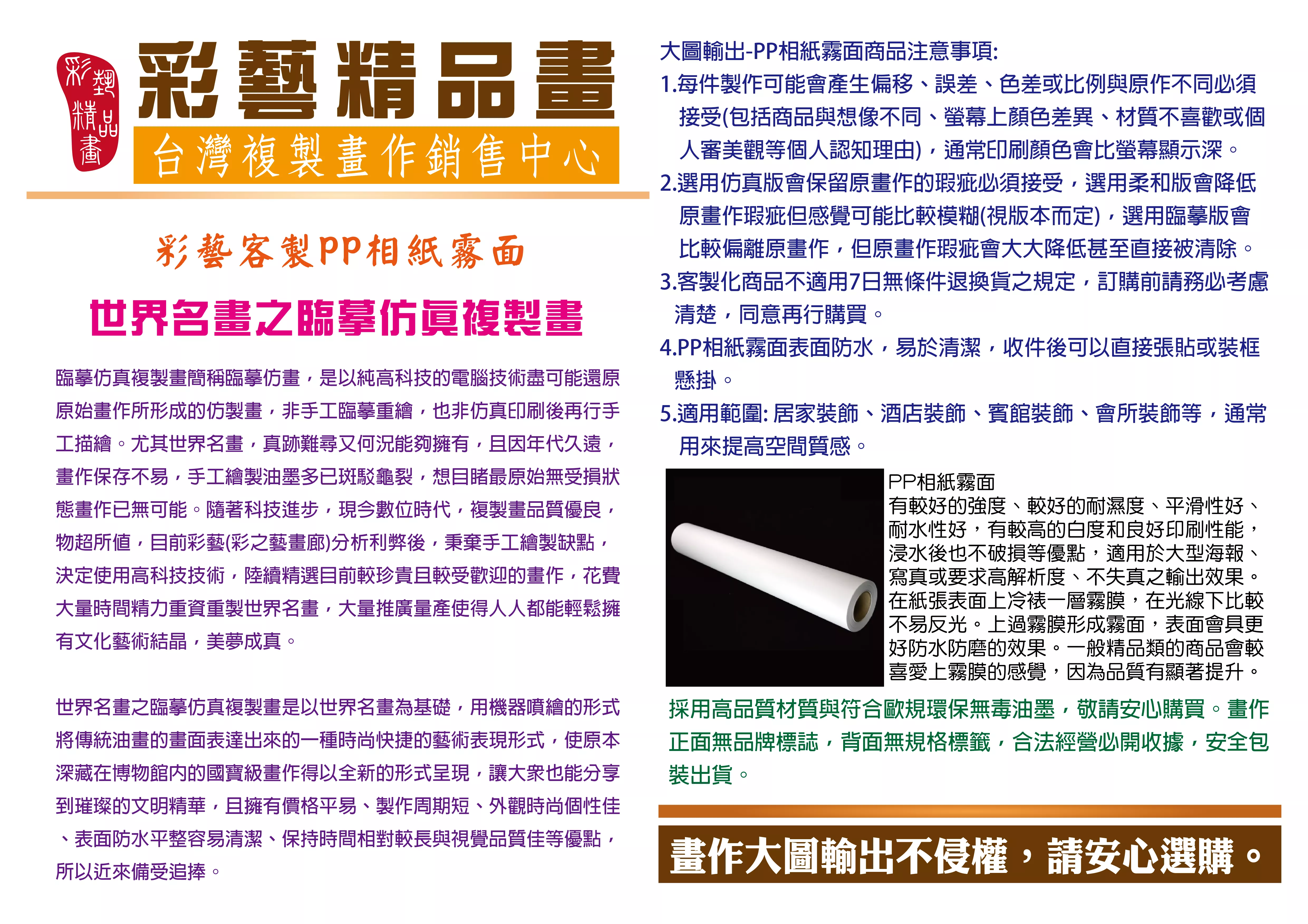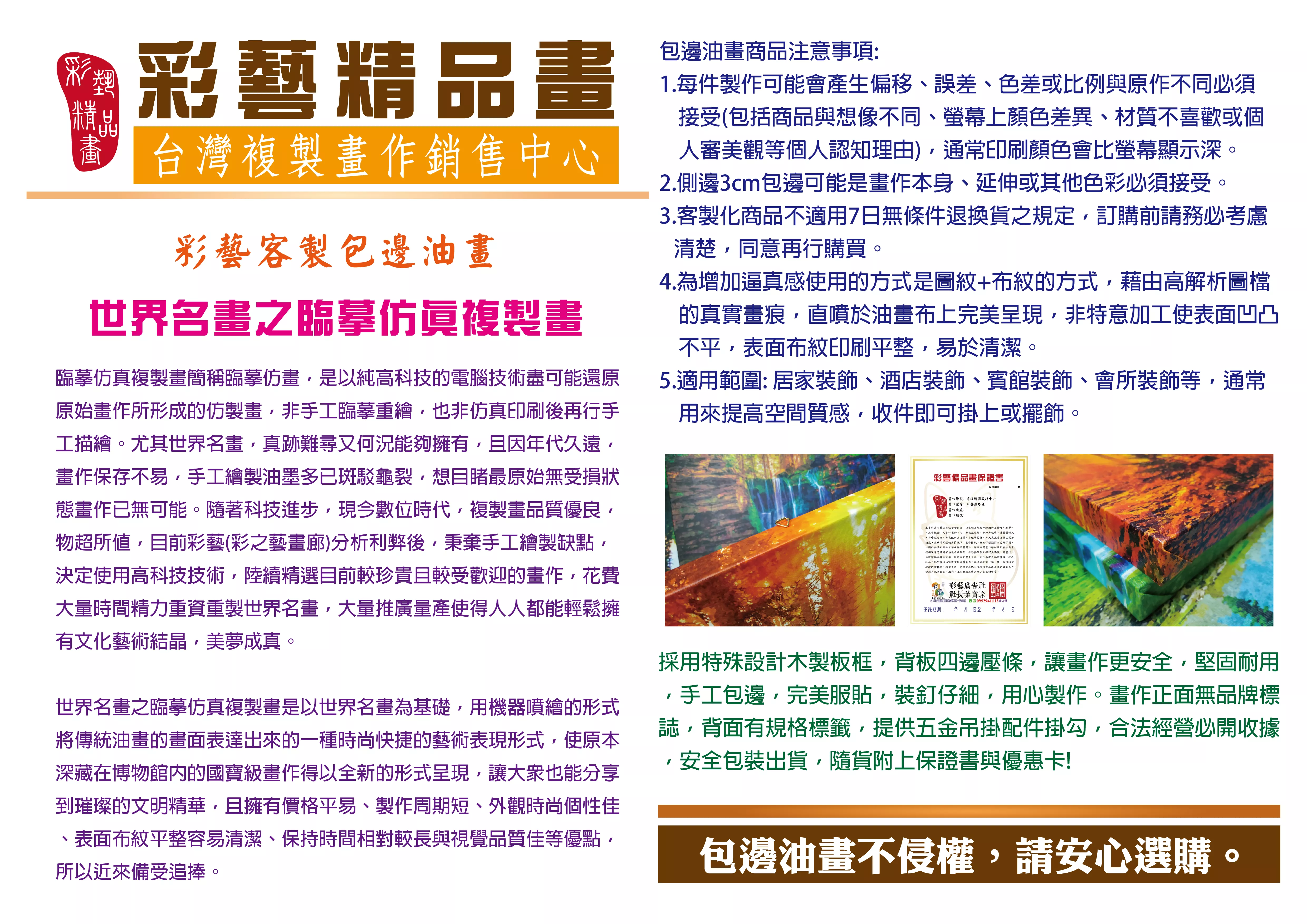 3.請注意畫作有不同尺寸,皆會有些許誤差與色差,畫作以實物為準,圖面僅供參考。