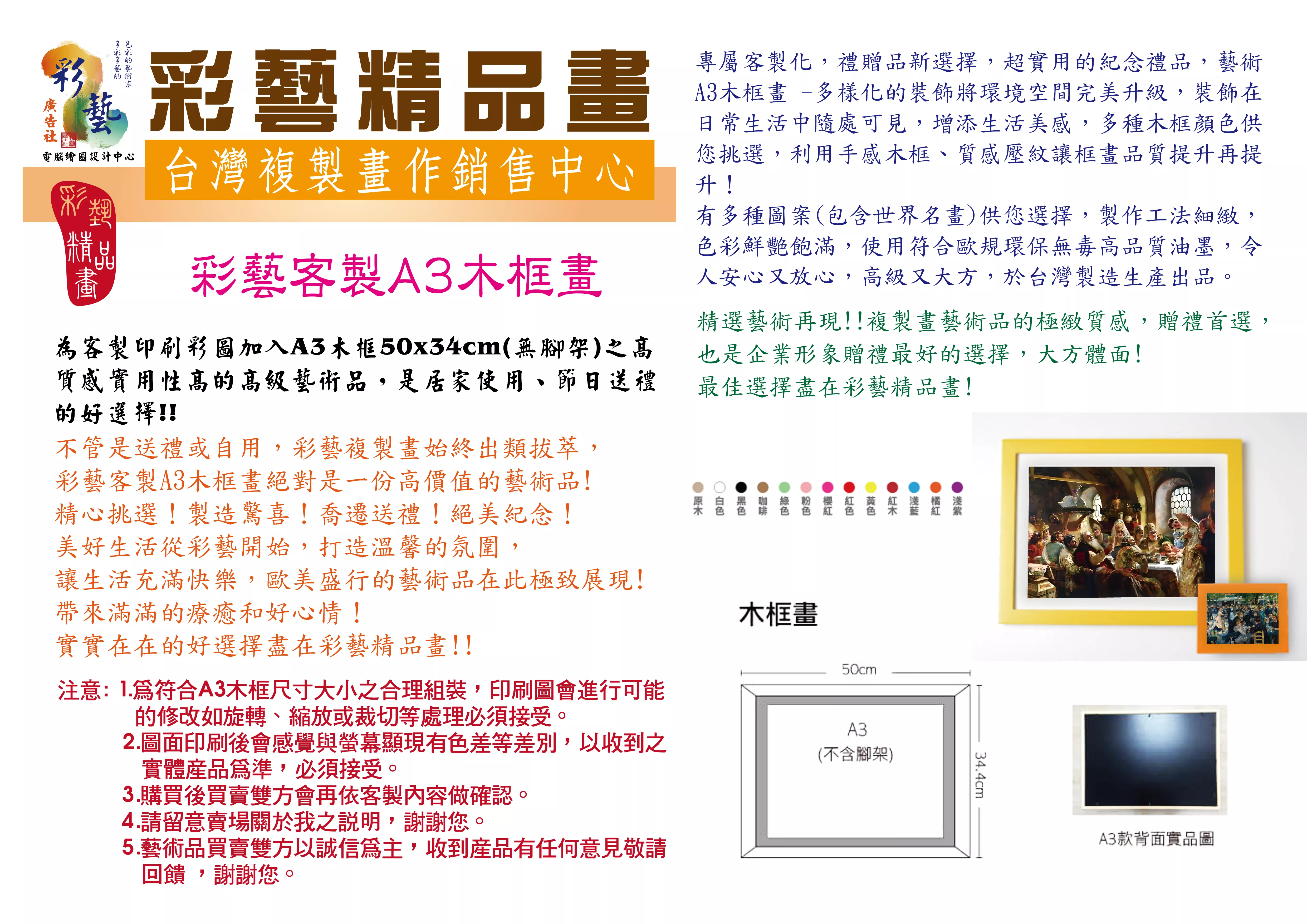 ●所在地區: 台灣彰化 (彩藝精品畫均由台灣彰化彩藝廣告社提供)