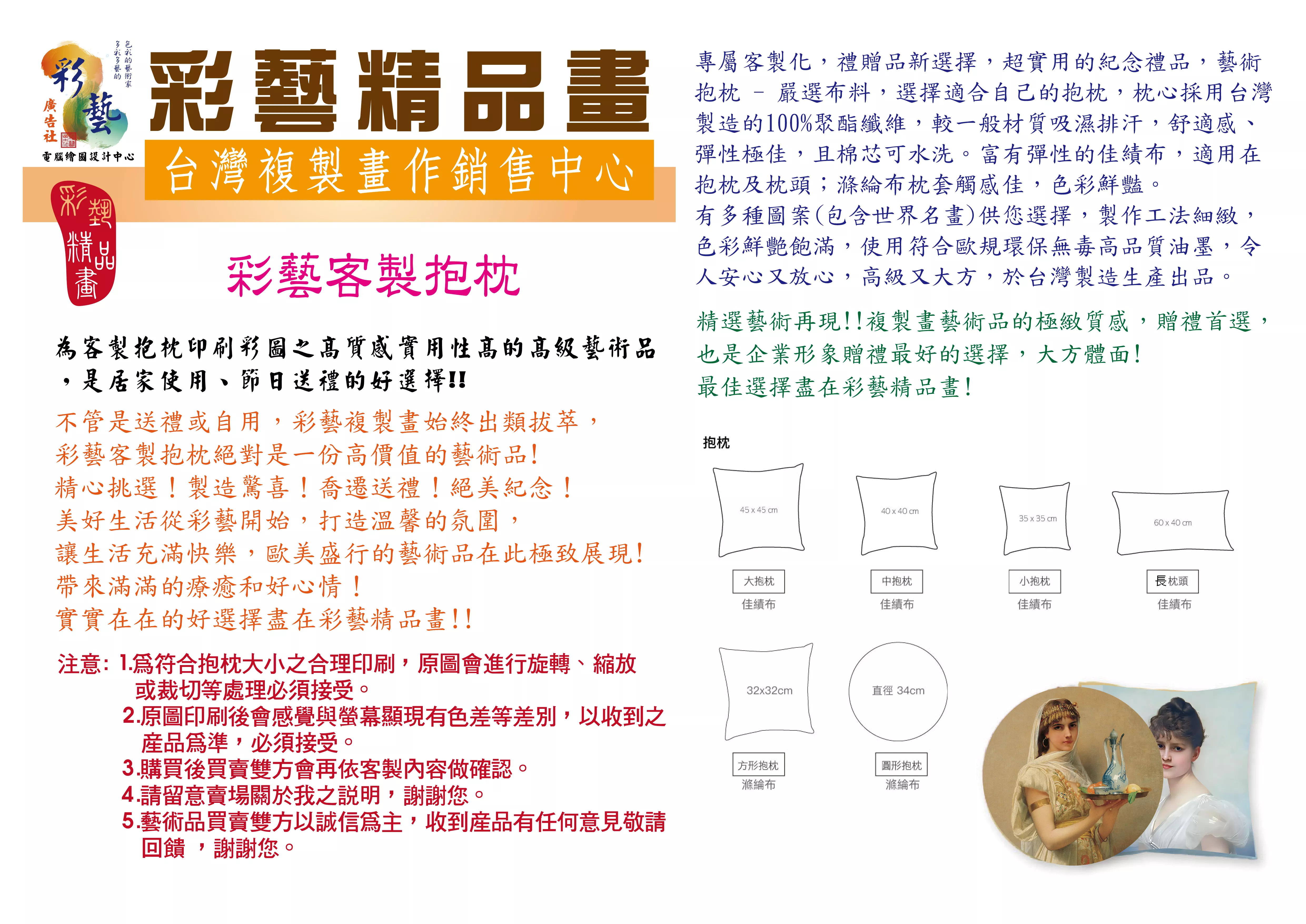 ●所在地區: 台灣彰化 (彩藝精品畫均由台灣彰化彩藝廣告社提供)